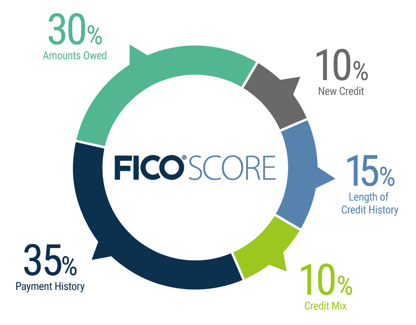 想要提高信用分数就要先了解信用分数的组成,以FICO信用分数为例,主要根据以下五大因素计算: